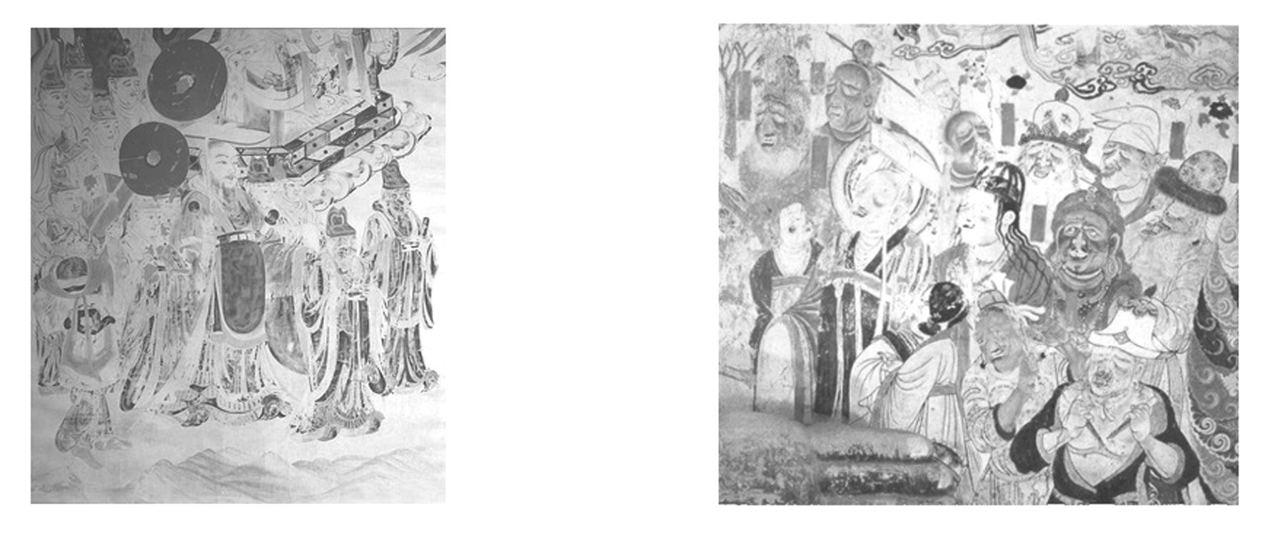 (2024·汕头高一阶段练习)下面两幅图是甘肃敦煌莫高窟第220窟(7世纪)部分壁画。左图是中国君臣图。右图人物形象中,有的上身半裸,有的身材高大,有的头戴羽帽(可能来自朝鲜半岛),有的肤色黝黑,有的头发卷曲,人物肤色和服饰均与左图不同。这说明当时( )