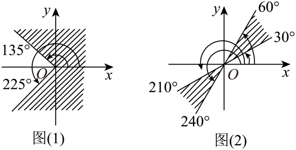 用弧度制表示终边在下列各图所示阴影部分内(包含边界)的角的集合.