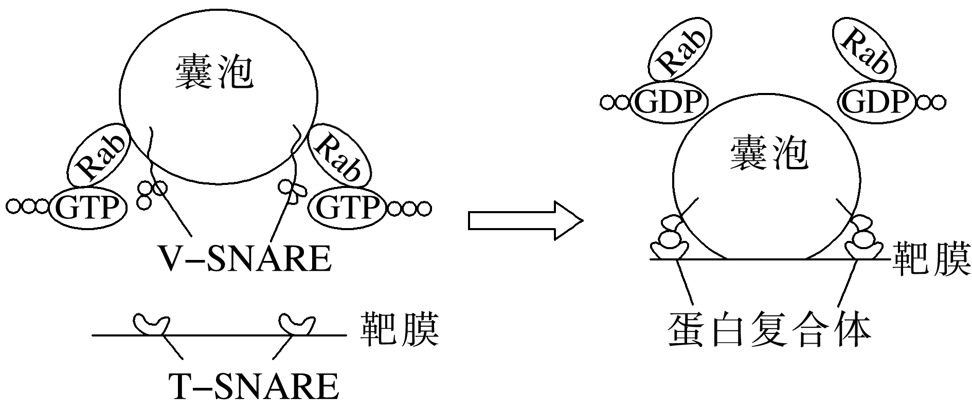 (2024·宁波高一期中)科学家发现了囊泡运输调控机制。如图是囊泡膜与靶膜融合过程示意图,囊泡上有一个特殊的V-SNARE蛋白,它与靶膜上的T-SNARE蛋白结合形成稳定的结构后,囊泡膜和靶膜才能融合,从而将物质准确地释放到相应的位点。下列叙述错误的是( )