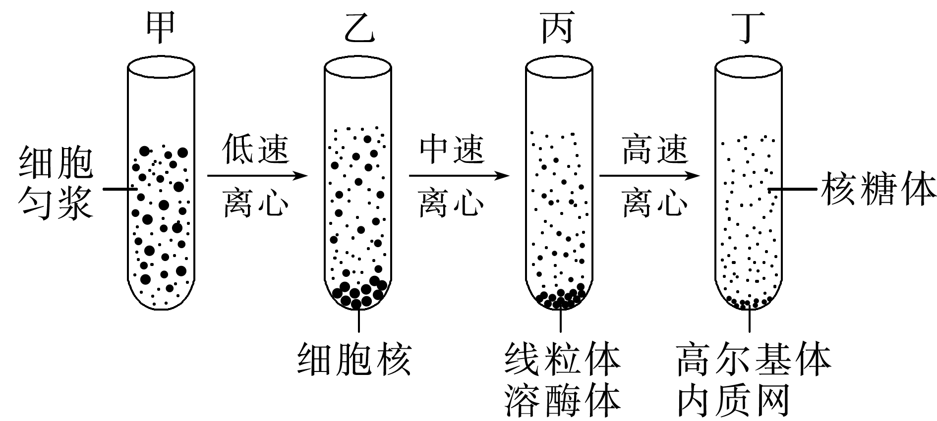 (2024·温州高一期中)科研人员将某组织材料经过研磨得到匀浆。通过差速离心法分离获得不同的细胞结构,每次离心都可将溶液分为上清液和沉淀物两部分。取细胞匀浆或离心后的上清液依次离心,其过程和结果如图所示。回答下列问题: