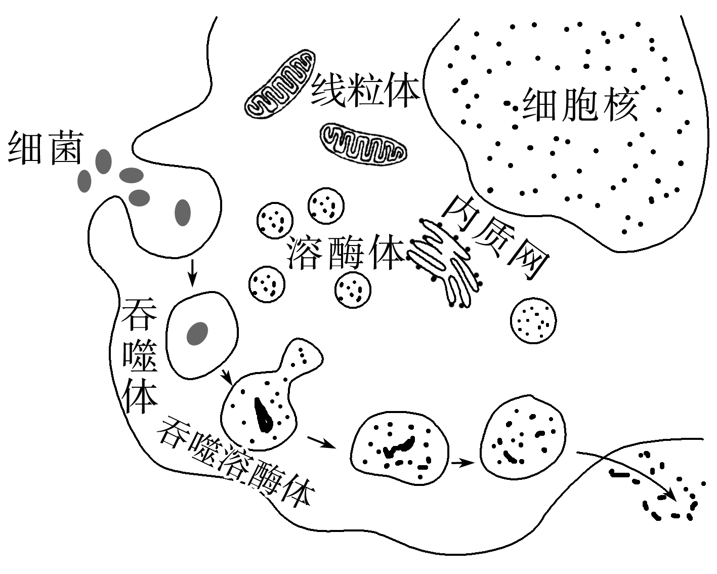 (2024·杭州高一期末)吞噬细胞是人体内重要的免疫细胞,能大量吞噬外来的病原体。如图为吞噬细胞吞噬细菌的示意图,请回答下列问题: