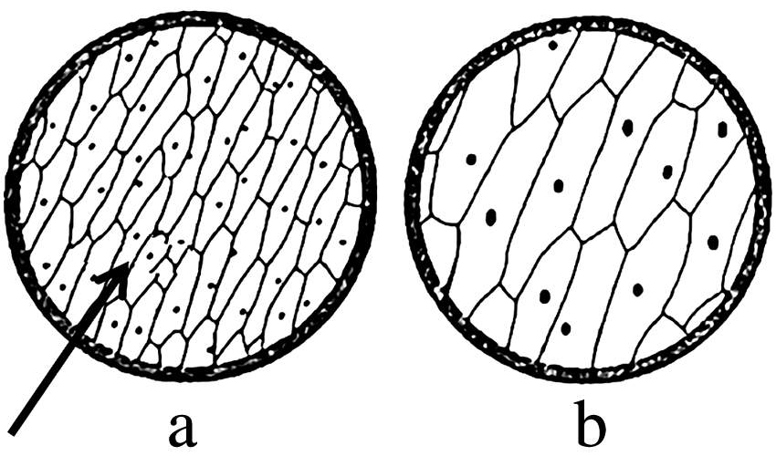 若换成b后发现视野太暗,可调节光圈(使用大光圈)或者反光镜(换用凹面镜),A正确;由低倍物镜换成高倍物镜后只能用细准焦螺旋调焦,B错误;把显微镜视野下的标本从图中的a(10×物镜)转为b(40×物镜),放大倍数b是a的4倍,物镜离装片的距离变近,C错误;若b中的细胞是a中箭头所指细胞,则应是将a的玻片往左下方移动后观察到的,D错误。